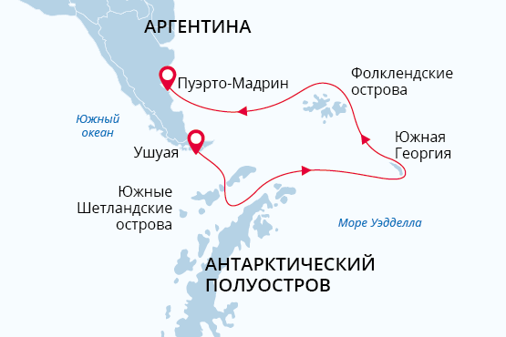 Как только вы достигнете региона континента Антарктида и близлежащих островов, начнутся активные исследования. Дважды в день вы будете высаживаться на побережья Шестого континента и антарктических островов. Это совершенно дикий мир, и высадки происходят с помощью специальных экспедиционных лодок. Пингвины буквально встречают нас на берегу. Иногда мы поднимаемся на вершину холма, чтобы полюбоваться на панораму сверкающих ледников и айсбергов. Часто мы становимся свидетелями того, как от ледника с грохотом откалывается ледяная глыба – так рождается айсберг и уходит в свободное плавание. Мы заходим в гости к ученым на полярных станциях. Средняя продолжительность высадки – 1-2 часа.