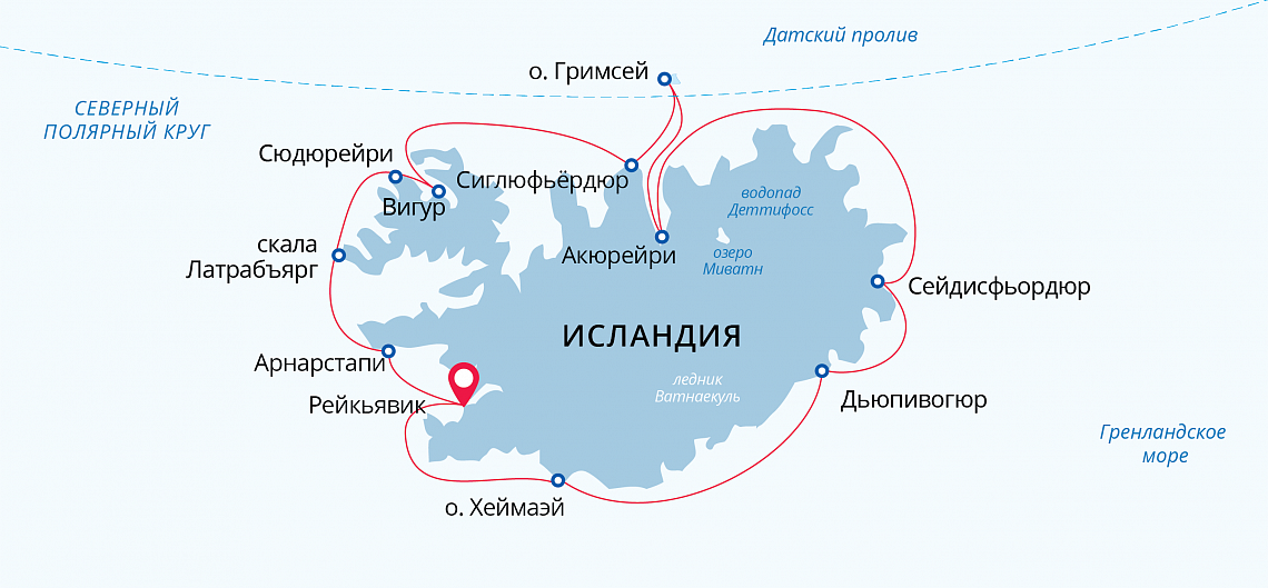 Наши круизные маршруты делают акцент на природные достопримечательности — они помогут ближе узнать таинственный регион. Уникальный и неповторимый, круиз вокруг острова начинается с посещения исландской столицы Рейкьявик и включает осмотр природных красот, недоступных в наземном путешествии. В этой стране соседствуют скалистые утесы и живописные пляжи, красные кратеры и ледяные горы, ущелья и гроты, а в застывшей лаве оживают легенды. Например, на полуострове Снаефеллснес находится вулкан Снэйфеллсйокудль. В романе «Путешествие к центру земли» Жюль Верн отправляет героев в недра земли именно через него. Морские круизы — это масса ярких впечатлений, а если они вокруг Исландии, то эмоции удваиваются. Нет более счастливой страны мира!