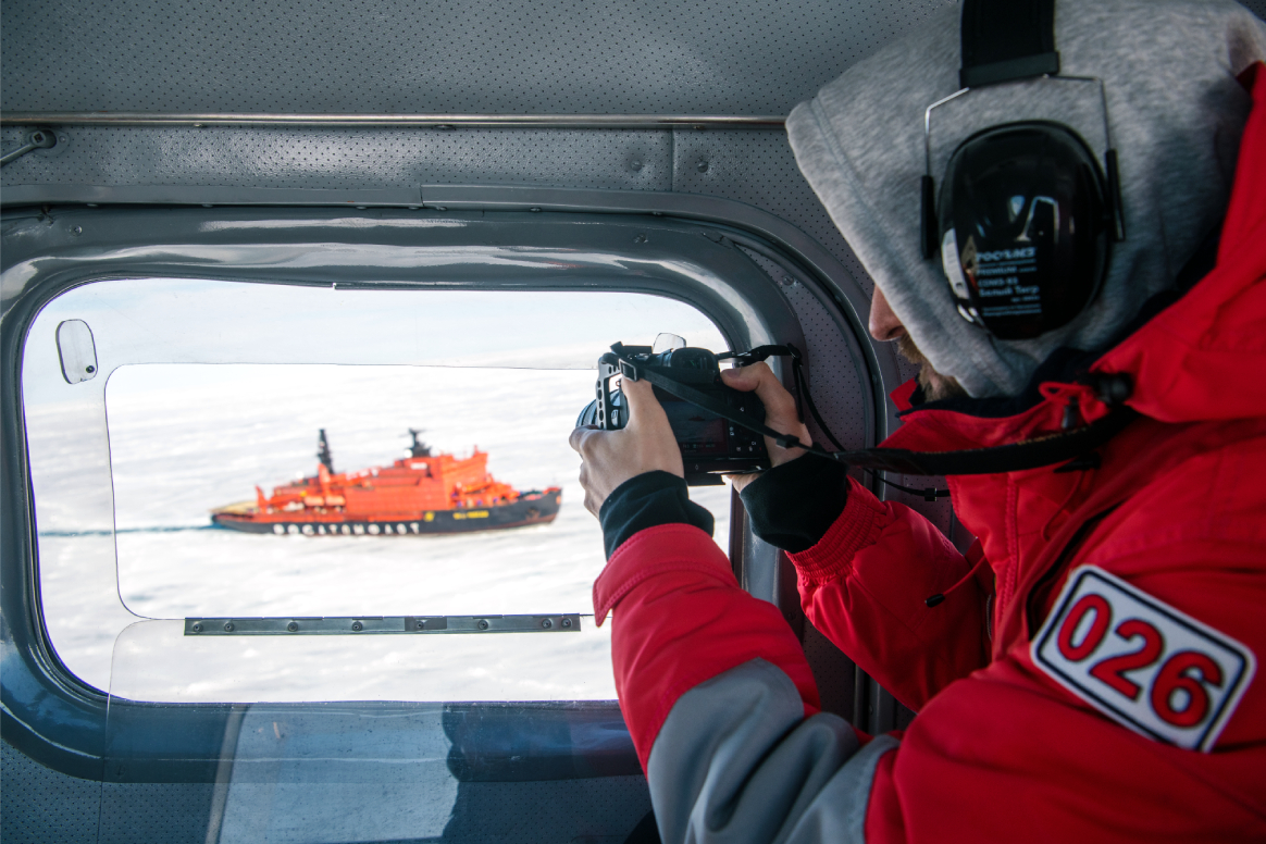 Увидеть с высоты птичьего полета мощный атомоход, прокладывающий себе путь сквозь трехметровые льды, - ни с чем не сравнимое удовольствие!